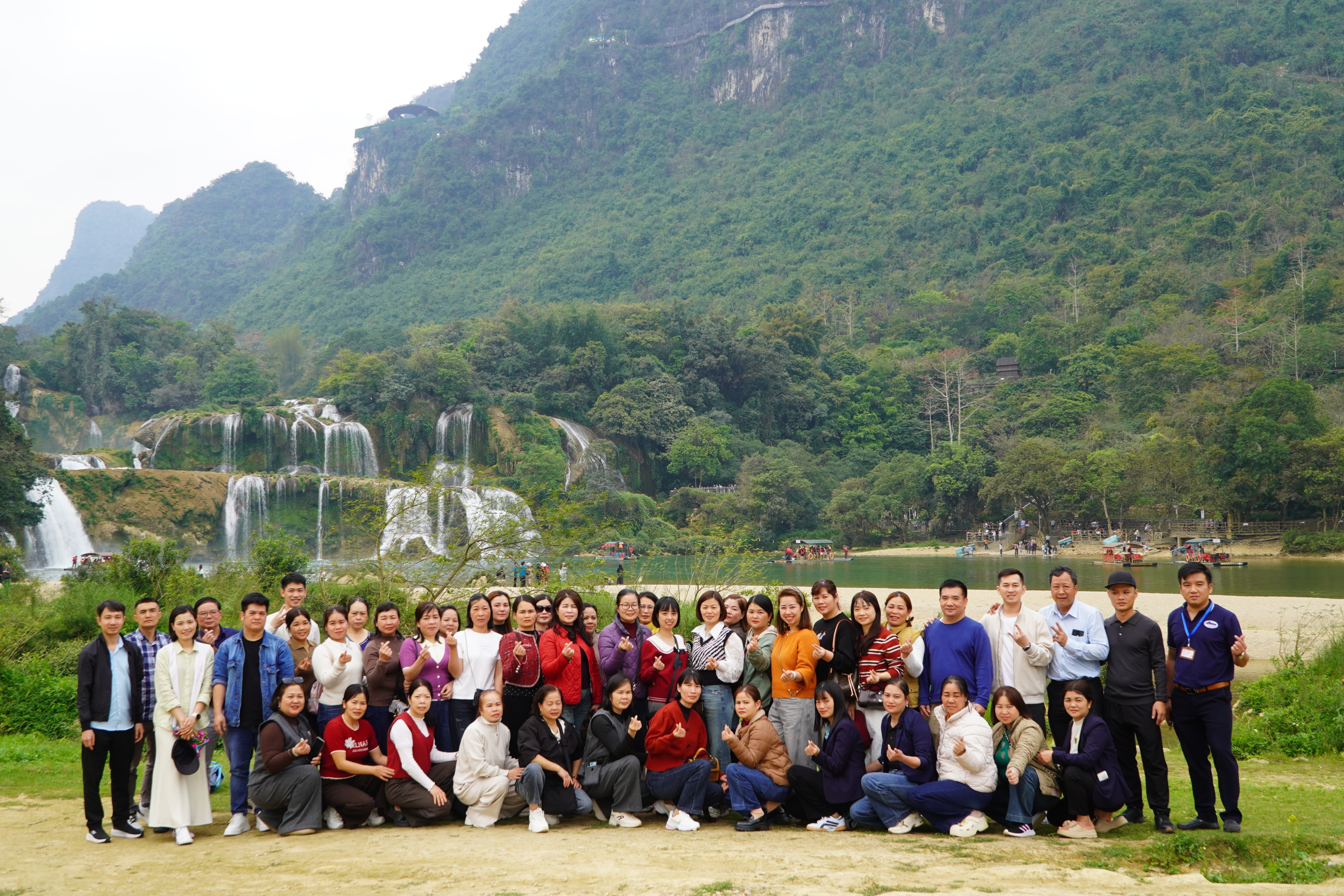 Tiếp đó, đoàn di chuyển đến tham quan Thác Bản Giốc, một trong những thác nước đẹp và hùng vĩ nhất Việt Nam. Tại đây, các thành viên trong đoàn đã cùng nhau chiêm ngưỡng vẻ đẹp thiên nhiên kỳ vĩ, lưu giữ nhiều khoảnh khắc đáng nhớ qua những bức ảnh tập thể. Chuyến tham quan không chỉ mang lại trải nghiệm thú vị mà còn giúp các thành viên thêm hiểu biết về vẻ đẹp thiên nhiên và tiềm năng du lịch của quê hương Cao Bằng.