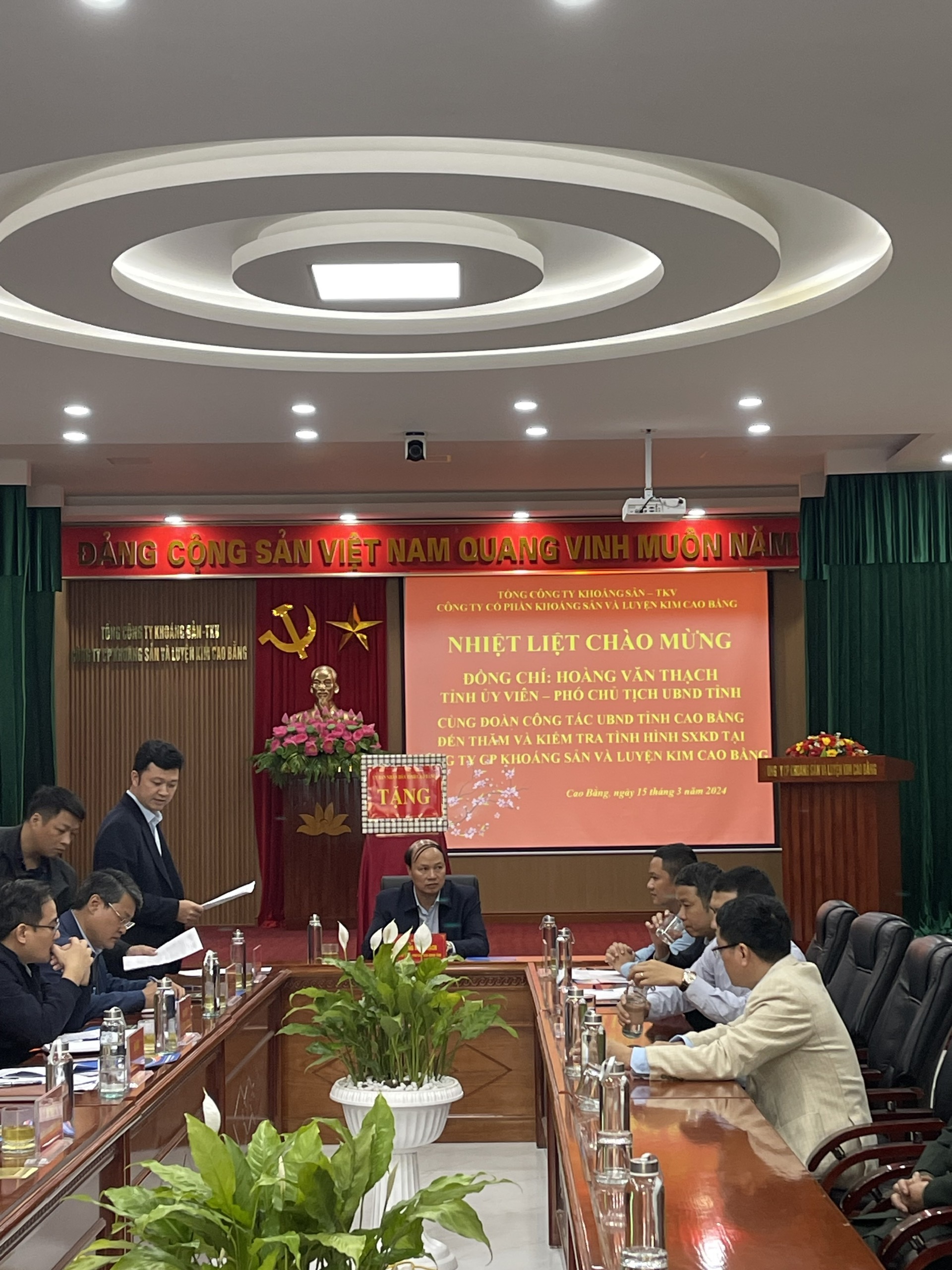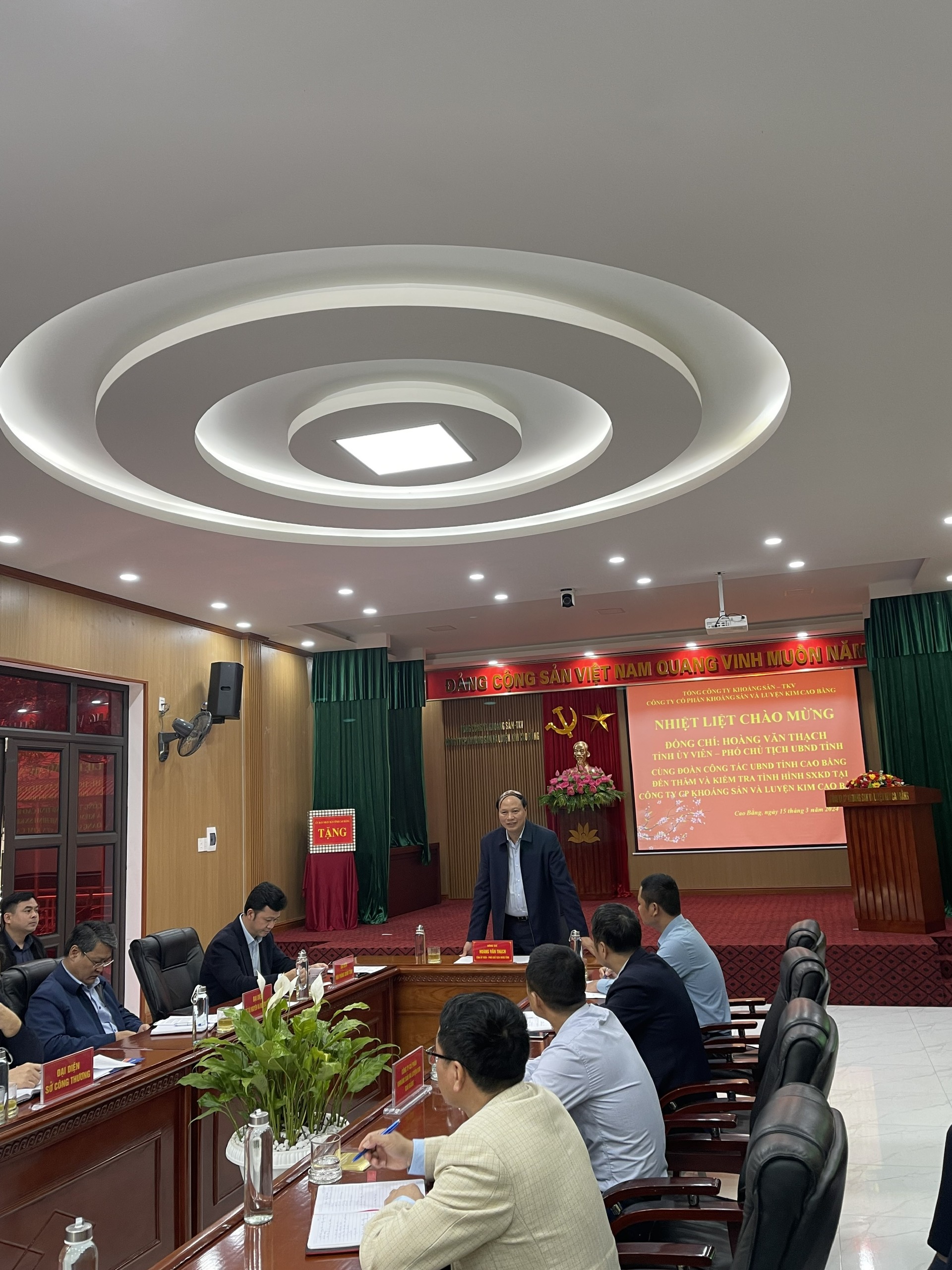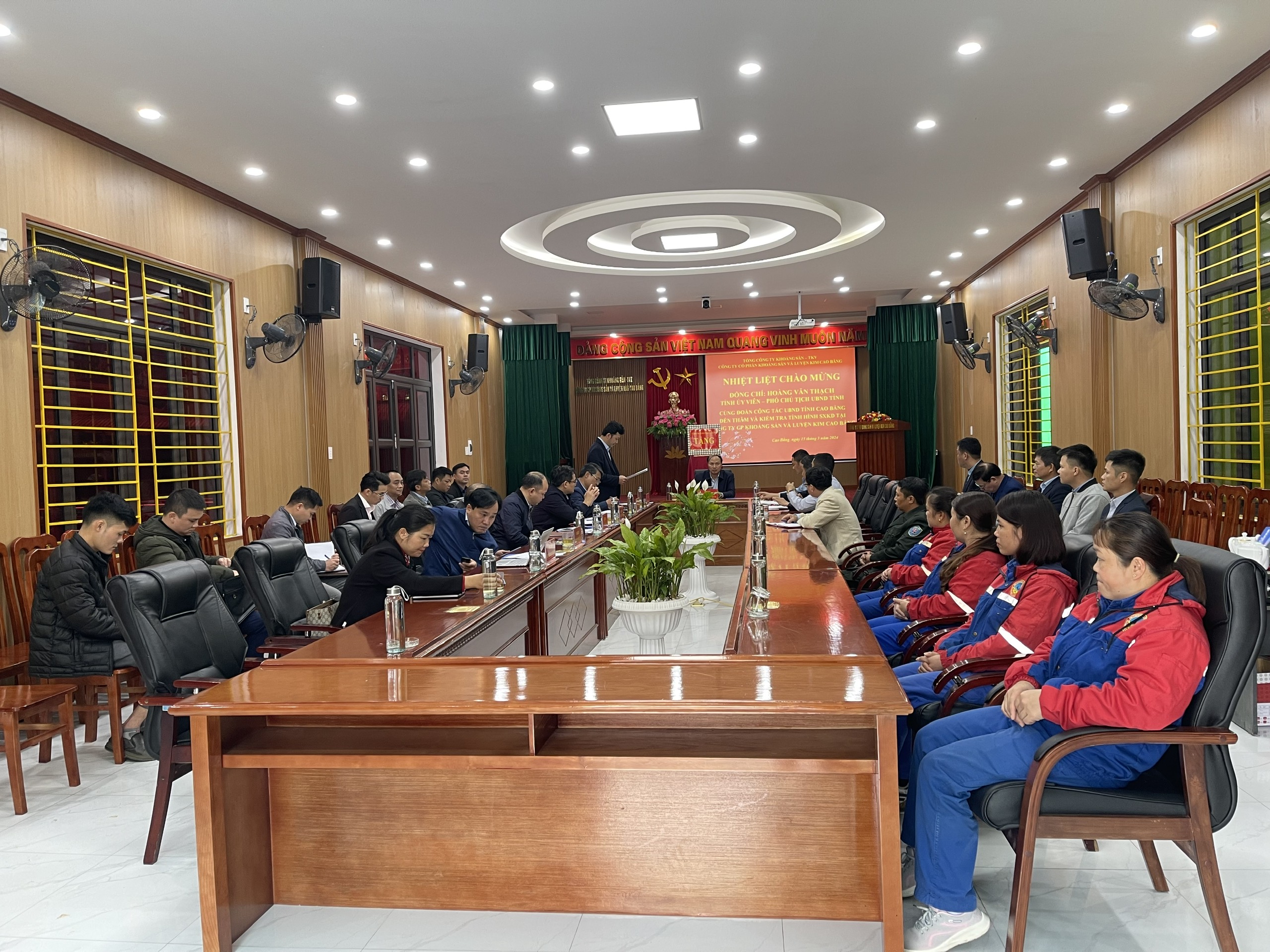 Đoàn đến kiểm tra, động viên tình hình SXKD của Công ty cổ phần Khoáng sản và Luyện kim Cao Bằng. Năm 2023, Công ty sản xuất 153 tấn thiếc thỏi 99,75%Sn; 456 tấn Ferro silic 45; doanh thu đạt 114.005 triệu đồng; lợi nhuận đạt 9.239 triệu đồng; nộp ngân sách Nhà nước 22.431 triệu đồng; đóng góp phúc lợi tại địa phương 550 triệu đồng. Duy trì việc làm cho 180 lao động, thu nhập bình quân 10,83 triệu đồng/người/tháng. Trong quá trình hoạt động SXKD, Công ty luôn tuân thủ pháp luật của Nhà nước, các quy định của UBND tỉnh và địa phương; duy trì và nâng cao công tác môi trường, an toàn lao động lên hàng đầu.